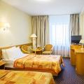 21м². В номере две односпальные кровати, тумбы, шкаф для одежды, рабочий стол, стулья, телевизор, интернет Wi-Fi, сейф, холодильник, телефон, фен. Санузел: ванна или душевая кабина, раковина, унитаз, комплект полотенец, тапочки, туал. принадлежности.